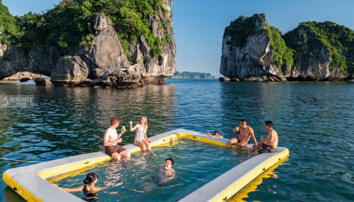 Lan Ha Bay full-day cruise tour from Hanoi with Serenity Cruise, through 2 Bays with lots of outdoor activities, kayaking, swimming, snorkeling, jumping, etc.