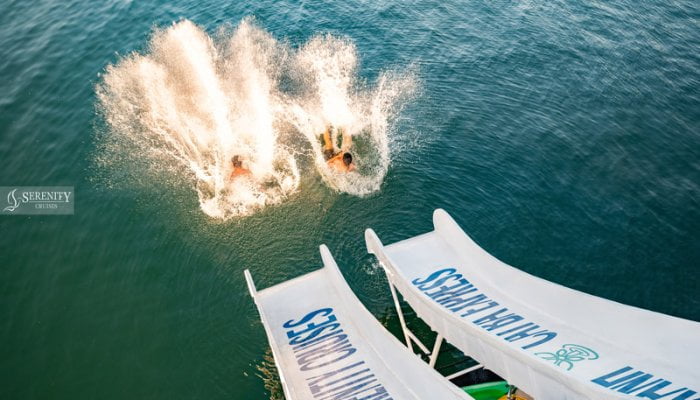 You can be allowed to jump into the water from the ship/cruise in Lan Ha Bay, while this activity is banned in Ha Long Bay & Bai Tu Long Bay.