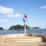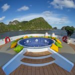 • Du thuyền duy nhất hiện nay có cả ba khu vực tắm thư giãn: Bể Sục, Bể Bơi trên boong, và bể bơi phao khí khổng lồ giữa vịnh.
