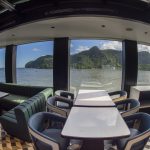 12:00 Quý khách trở về khu vực nhà hàng tại sảnh 1 và sảnh 2 của du thuyền thưởng thức bữa trưa (Đặc biệt nếu tổng đoàn khách trên tàu từ 40 người trở lên, bữa trưa sẽ phục vụ ăn Buffet) đậm hương vị biển Cát Bà giữa lòng di sản.